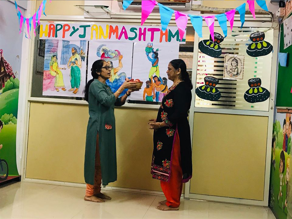 The significance of this festival is explained by narrating the birth story of Lord Krishna. Kids clad in the costumes of Radha and Krishna break the Handi and celebrate the birth of lord Krishna.